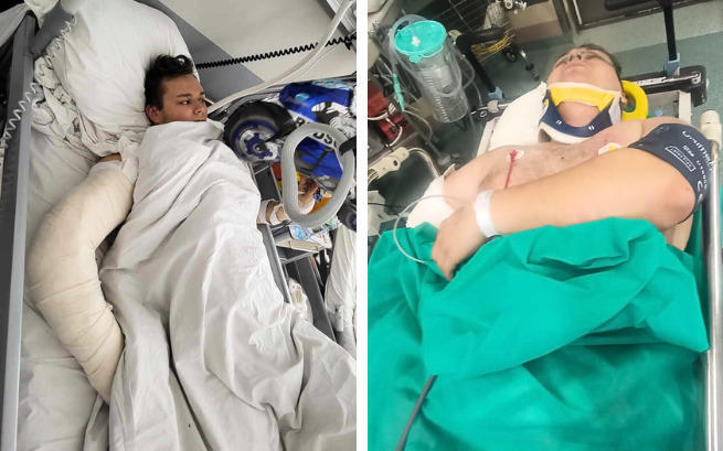 Koszmarny wypadek zarejestrowała kamera, która miał na kasku kolega jadący za nim. Stan młodego mężczyzny był niezwykle ciężki. Do szpitala został przetransportowany helikopterem. Rozległe urazy głowy, liczne krwiaki (w płacie ciemieniowym, czołowym i skroniowym mózgu), otwarte wielocząstkowe złamania ręki, złamana kość uda z przemieszczeniem i głębokie otarcia… – Okropna lista, ale w tamtym momencie liczyło się tylko to, żeby przeżył!- czytamy na stronie.