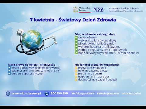 Podkarpacki NFZ stawia na profilaktykę i zdrowie pacjentów. Chce obalać mity, wyjaśniać wątpliwości i pokazywać sprawdzone rozwiązania, które naprawdę pomagają. Regularnie przypomina, jak ważna jest profilaktyka i wczesne wykrywanie chorób. W ramach cyklu „Dziś jest dzień…” przygląda się wybranym tematom związanym ze zdrowiem mieszkańców Podkarpacia. 7 kwietnia przypada Światowy Dzień Zdrowia.
