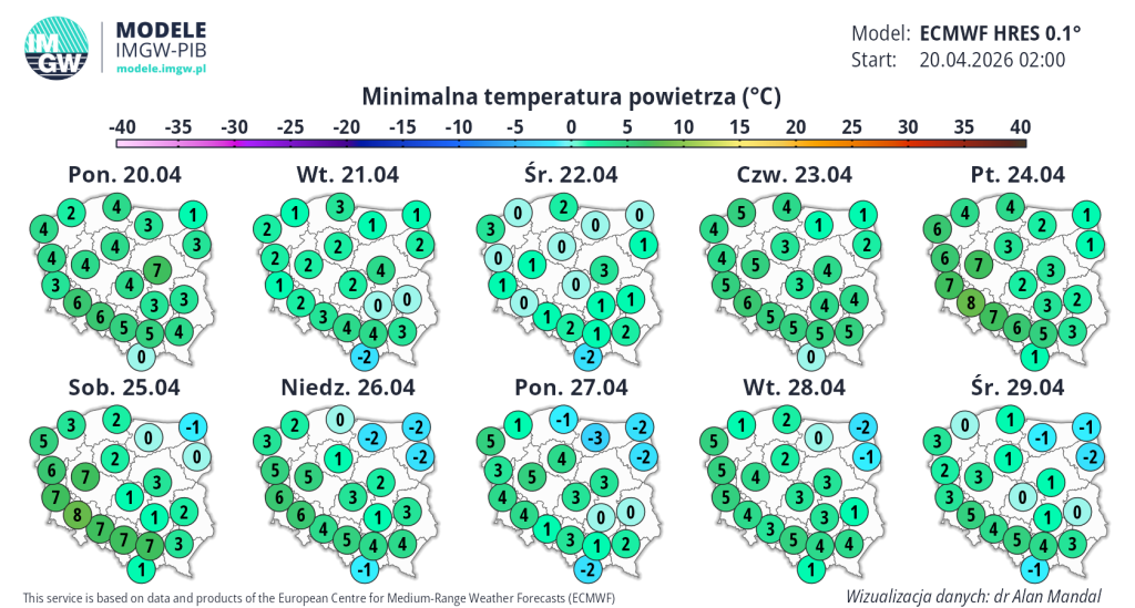Najwięcej słońca prognozowane jest na środę. Jednak napływ zimnego, arktycznego powietrza z północy sprawi, że temperatury w ciągu dnia osiągną maksymalnie 10–15°C, a pod koniec tygodnia nawet te wartości mogą być trudne do osiągnięcia. Dodatkowo silniejszy wiatr sprawi, że temperatura odczuwalna będzie jeszcze niższa.