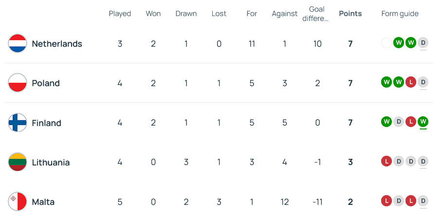 HOLANDIA: Verbruggen – DDumfries, van Hecke (87. De Vrij), van Dijk, van de Ven, Gravenberch, Reijnders (83. Kluivert), de Jong (83. Timber), Simons (79. Malen), Depay (78. Weghorst), Gakpo