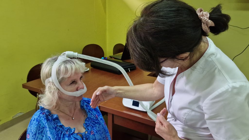 – Bezdech senny, który wiąże się z głośnym chrapaniem, ale przede wszystkim z poważnymi zagrożeniami zdrowia i życia, rozpoznawany i leczony jest m.in. właśnie u nas. Na naszym oddziale wykonuje się polisomnografię i w przypadku potwierdzenia bezdechu sennego na poziomie średnim lub ciężkim, wykonywane są miareczkowania, czyli dobieranie maski do stosowania aparatu CPAP. Maska jest podłączona do urządzenia, które generuje dodatkowe ciśnienie w drogach oddechowych pacjenta. Dzięki temu są one chronione przed zapadaniem się i utratą drożności. Zapobiega to epizodom bezdechu, spłyceniu oddechów – mówi Wanda Golba, pielęgniarka oddziałowa.