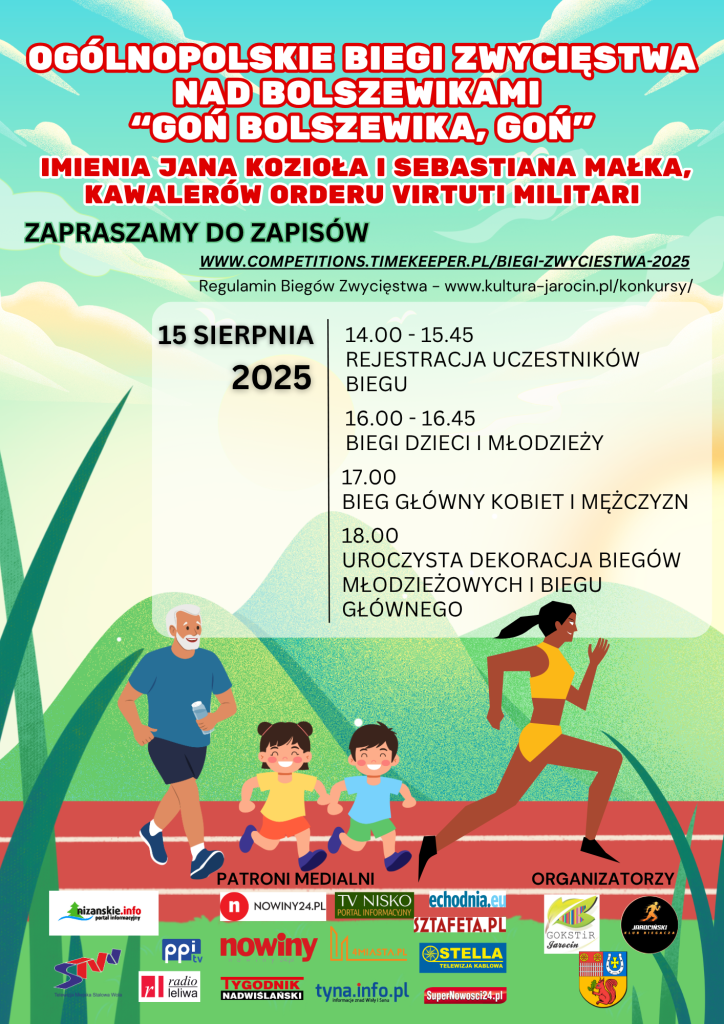Gminny Ośrodek Kultury, Sportu, Turystyki i Rekreacji w Jarocinie oraz Gmina Jarocin zapraszają na Biegi Zwycięstwa „Goń bolszewika, goń 2025”. Zawody, do których wciąż można się zapisywać, odbędą się 15 sierpnia br. (początek o godz. 16).