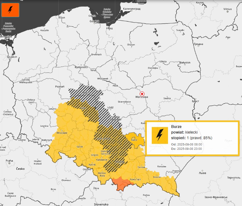 Według prognoz IMGW burze mogą objąć większość kraju, z wyłączeniem północnych regionów, takich jak Pomorze, Warmia, Mazury, Podlasie, Mazowsze i Lubelszczyzna. Najsilniejsze zjawiska spodziewane są na Śląsku, w Małopolsce i w Bieszczadach, gdzie wolno przemieszczające się komórki burzowe mogą generować obfite opady deszczu, porywisty wiatr oraz grad.