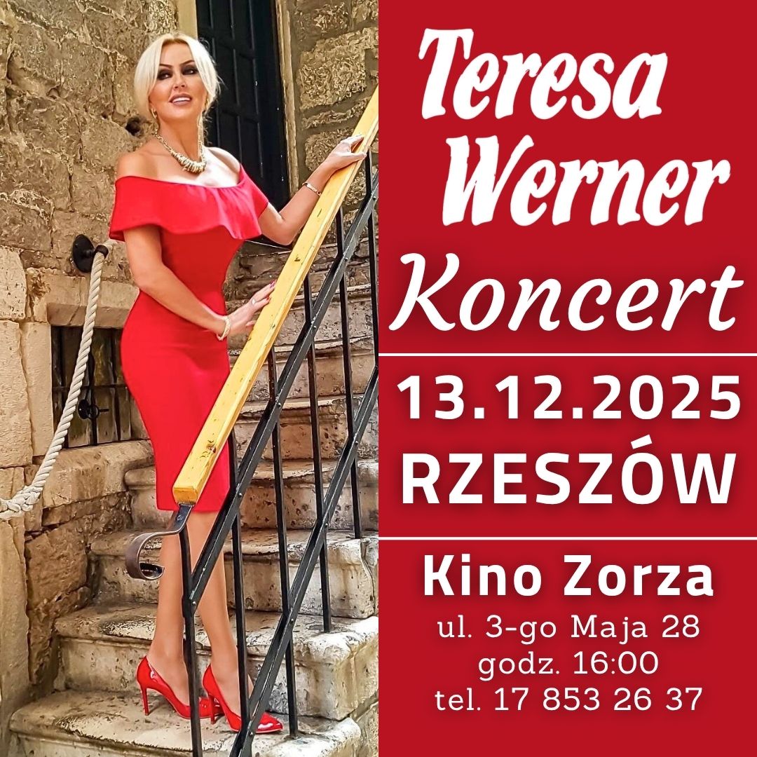 Ikona stylu dla kobiet, ideał piękna dla mężczyzn. Jedyna i niepowtarzalna Teresa Werner już 13 grudnia o godz. 16 wystąpi z wyjątkowym koncertem w rzeszowskim kinie Zorza.
