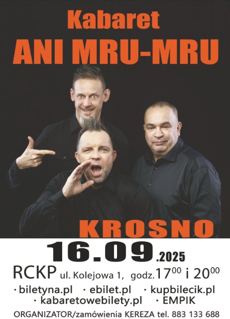 ANI MRU-MRU to kabaret dla każdego. Artyści podejmują tematy obyczajowe, z życia wzięte. Są rozchwytywani przez publiczność w każdym wieku, a każdy ich skecz bawi do łez. Mają swój własny, niepowtarzalny styl. Za jego sprawą zdobyli tysiące wiernych fanów. Kabaret ANI MRU-MRU już 16 września wystąpi w Krośnie!