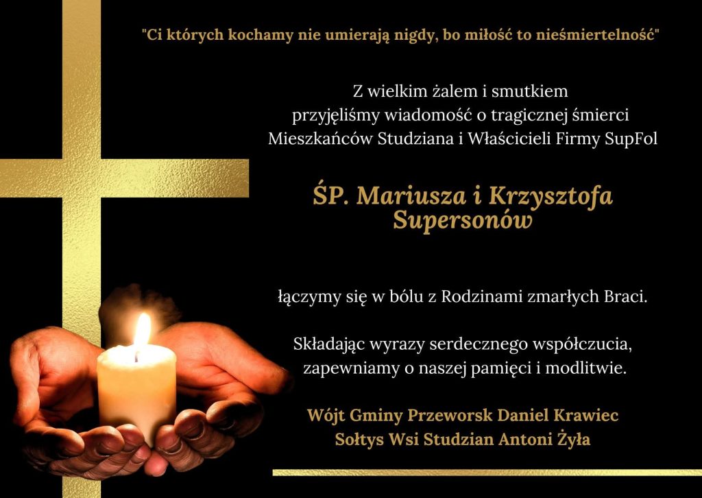 Starosta przeworski, Dariusz Łapa w mediach społecznościowych złożył w niedzielę rodzinie ofiar oraz bliskim zmarłych i ich współpracownikom, kondolencje:
