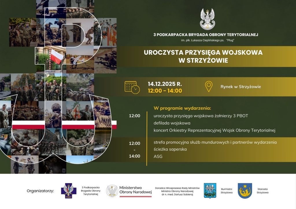 Ostatnim etapem szkolenia podstawowego będzie uroczysta przysięga wojskowa, która odbędzie się 14 grudnia 2025 roku, o godzinie 12, na Rynku w Strzyżowie.