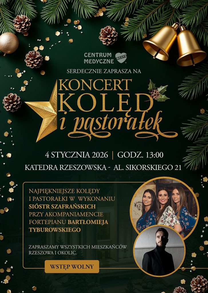 Wielkimi krokami zbliża się koncert Kolęd i Pastorałek, który odbędzie się już 4 stycznia 2026 roku o godz. 13:00 w Katedrze Rzeszowskiej. Organizatorem wydarzenia jest Centrum Medyczne Medyk. Wstęp wolny.