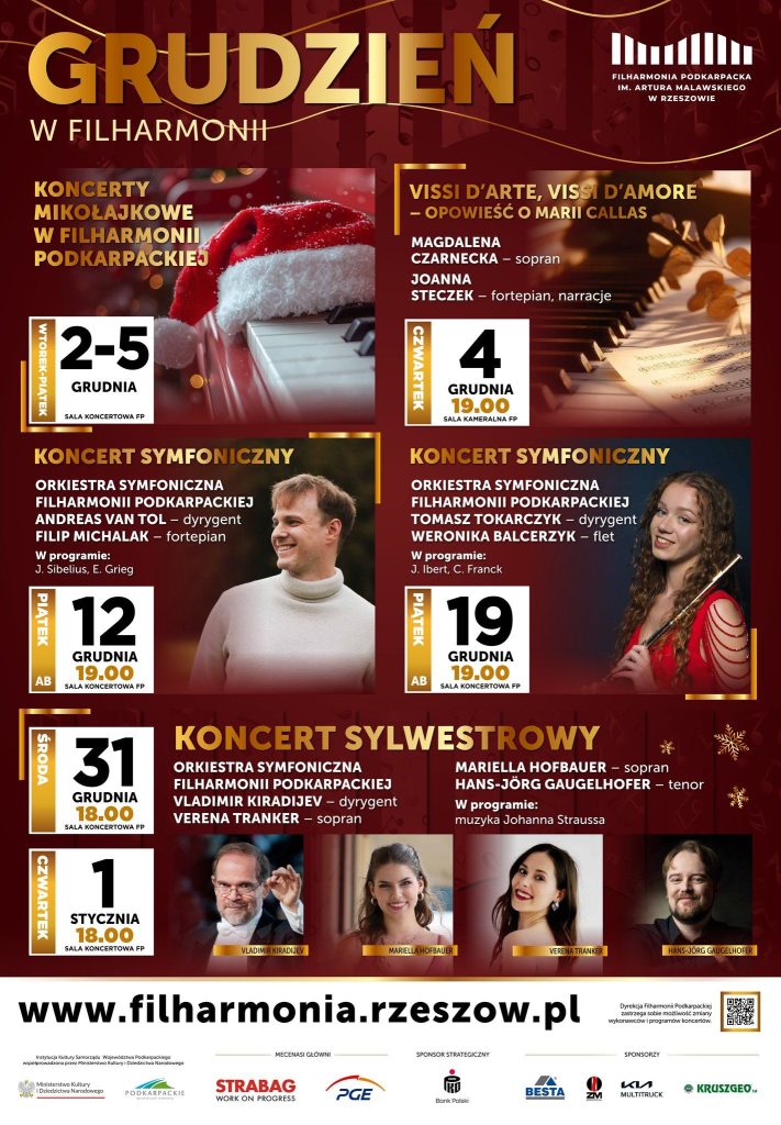Już 19 grudnia o godz. 19 w Filharmonii Podkarpackiej wystąpi Orkiestra Symfoniczna Filharmonii Podkarpackiej pod batutą Tomasza Tokarczyka. W roli solistki wystąpi flecistka, Weronika Balcerczyk.