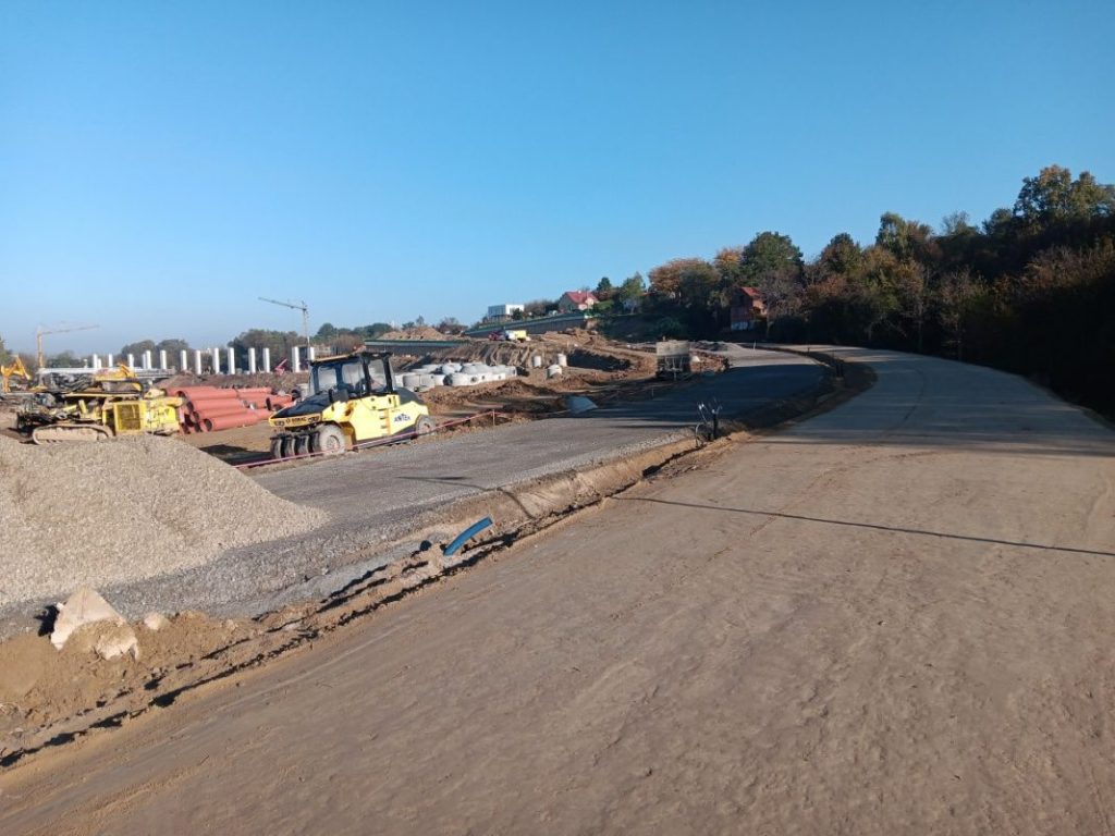 W zakresie robót drogowych w dalszym ciągu kontynuowane są prace związane z wzmocnieniem podłoża pod nasypy oraz budowane nasypy drogowe. wykonano warstwę transmisyjną od strony ul. Ciepłowniczej.