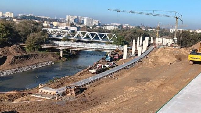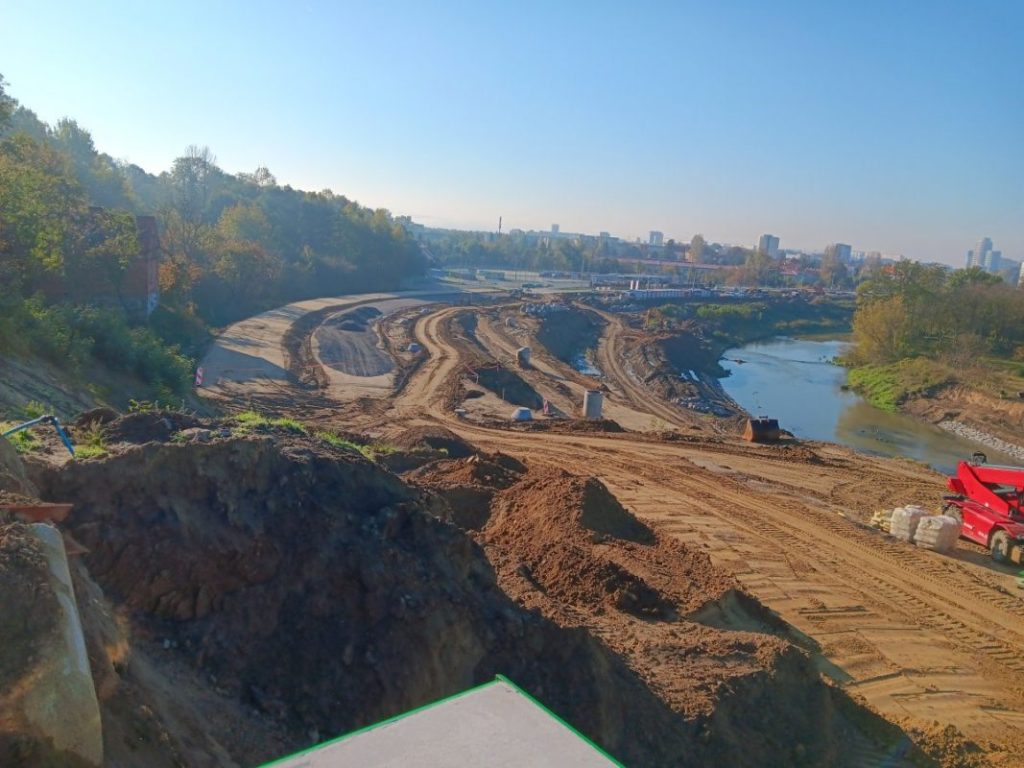 Następnym obiektem inżynierskim realizowanym w ramach przedmiotowej inwestycji jest mur oporowy w rejonie ul. Konfederatów Barskich w technologii kotwionej palisady z pali wierconych w osłonie rurowej. Wykonano oczep muru oporowego. Na obecną chwilę trwają prace związane z przygotowaniem do montażu zbrojenia oczepu dolnego.