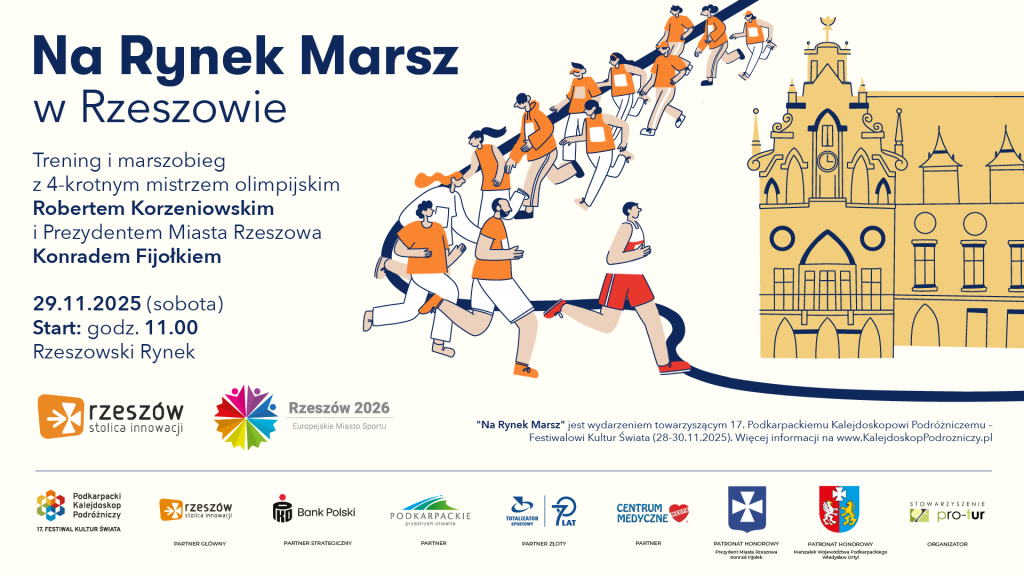 11:00 – Na Rynek Marsz! – trening z Robertem Korzeniowskim i Prezydentem Rzeszowa Konradem Fijołkiem
