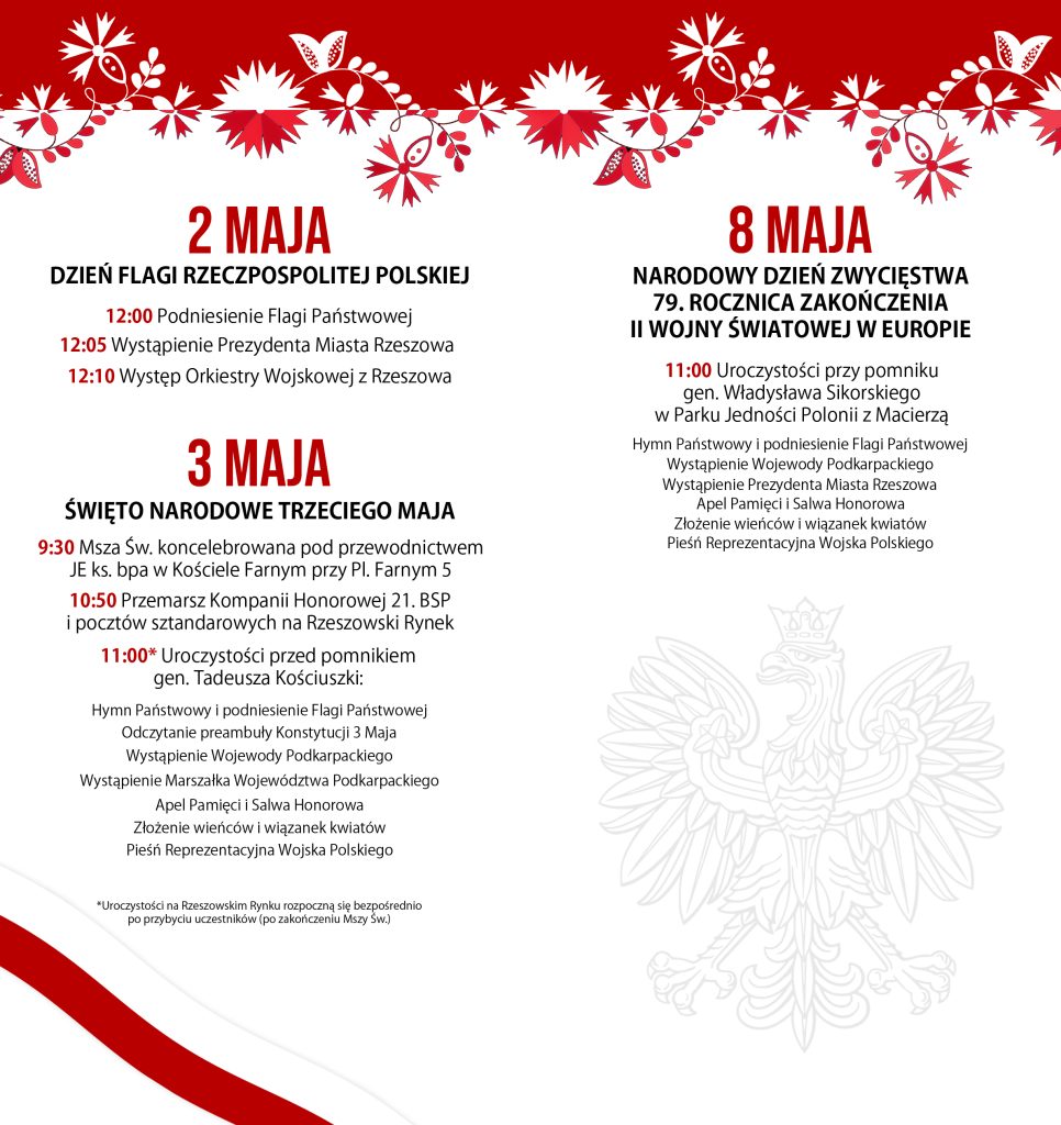 Wojewoda Podkarpacki, Marszałek Województwa Podkarpackiego, Prezydent Miasta Rzeszowa oraz Dowódca Garnizonu Rzeszów zapraszają na majowe uroczystości patriotyczne.