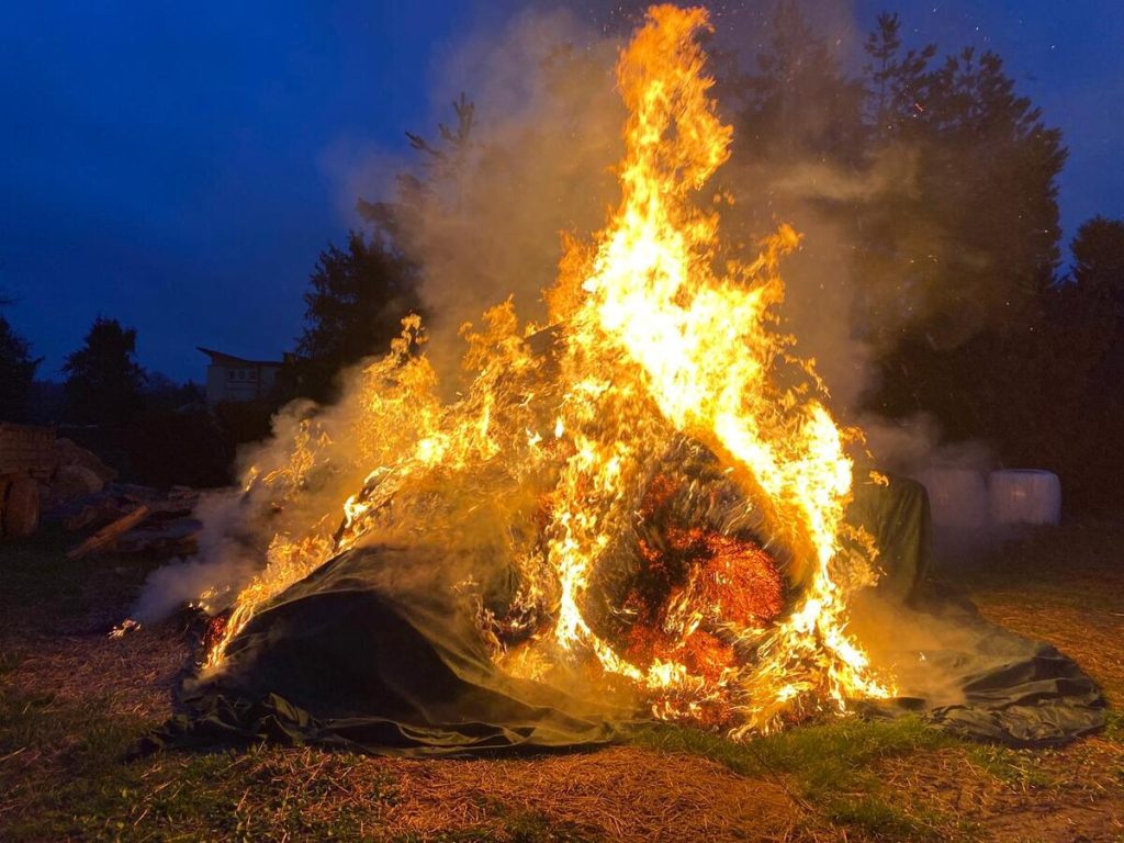30-latek podpalił siano składowane na posesji swoich rodziców. Jego czyn miał być zemstą za to, że nie chcieli go wpuścić do domu, bo był nietrzeźwy. Pierwsze czynności przy opanowaniu ognia, podjęli policjanci.