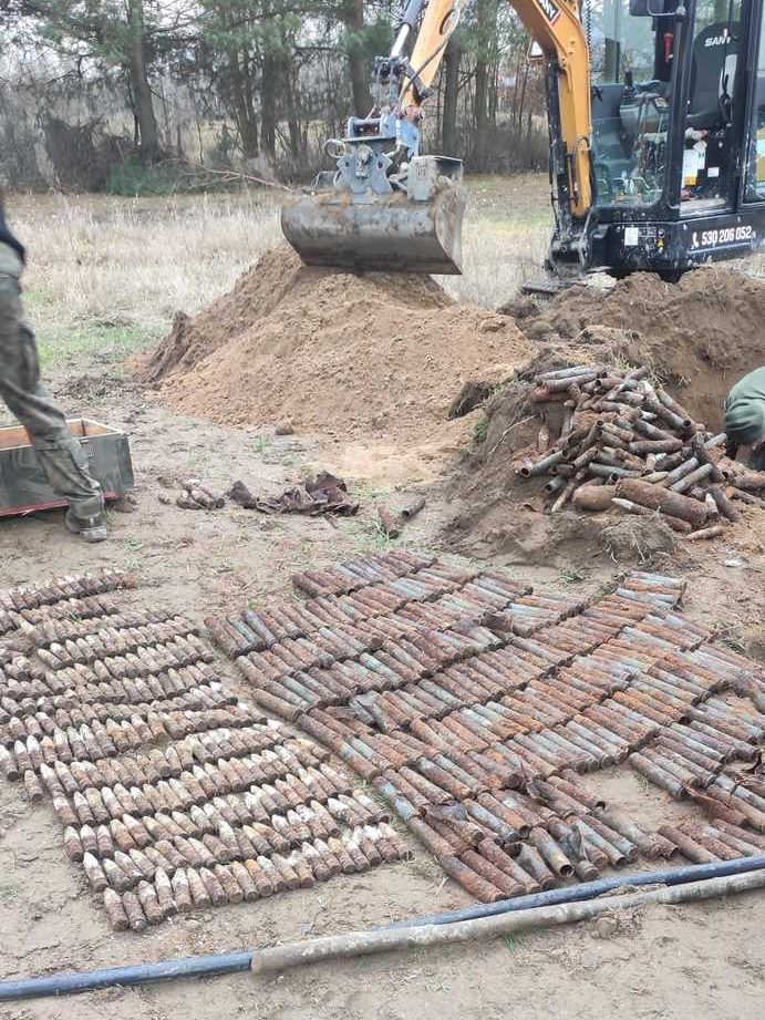 Rzeszowscy funkcjonariusze z grupy rozpoznania minersko-pirotechnicznego, określili niebezpieczne znalezisko jako niewybuchy pochodzące z okresu II wojny światowej. Wczoraj łącznie wykopano 750 sztuk pocisków artyleryjskich. Z uwagi na warunki atmosferyczne i zapadający zmrok prace wstrzymano do dnia następnego. Mundurowi z komisariatu w Trzebownisku całą noc zabezpieczali teren niebezpiecznego znaleziska.