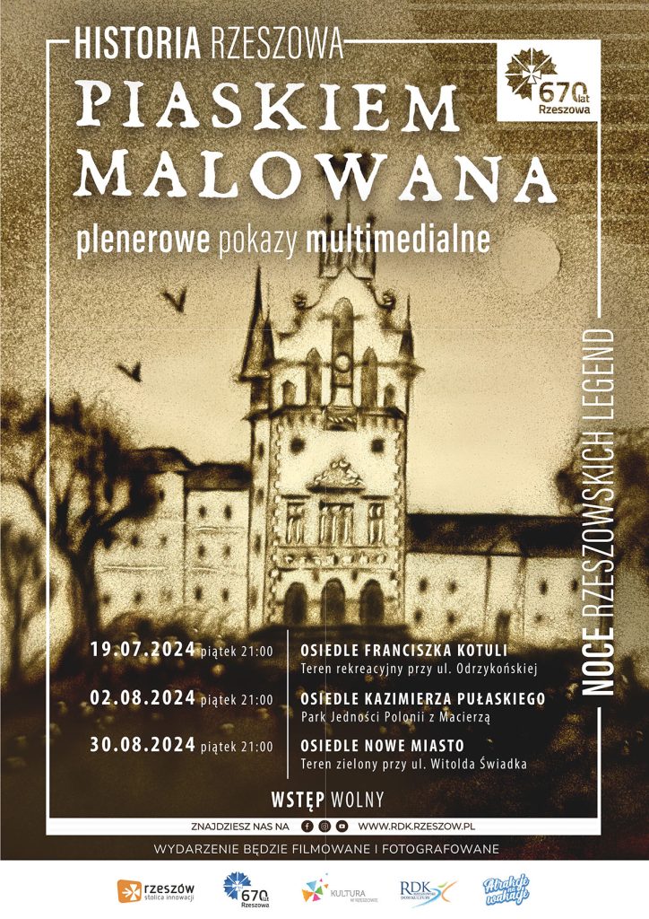 Rzeszowski Dom Kultury zaprasza wszystkich mieszkańców na jedyny w swoim rodzaju cykl plenerowych pokazów multimedialnych, który został przygotowany z okazji 670-lecia Lokacji Miasta Rzeszowa. Widowiska „Noce rzeszowskich legend. Historia Rzeszowa piaskiem malowana” odbywają się w wybrane piątki wakacyjne w różnych lokalizacjach na terenie Rzeszowa. Udział w wydarzeniach jest bezpłatny, a najbliższy pokaz odbędzie się już dziś, w piąte (2 sierpnia) o godz. 21 w Parku Jedności Polonii z Macierzą.