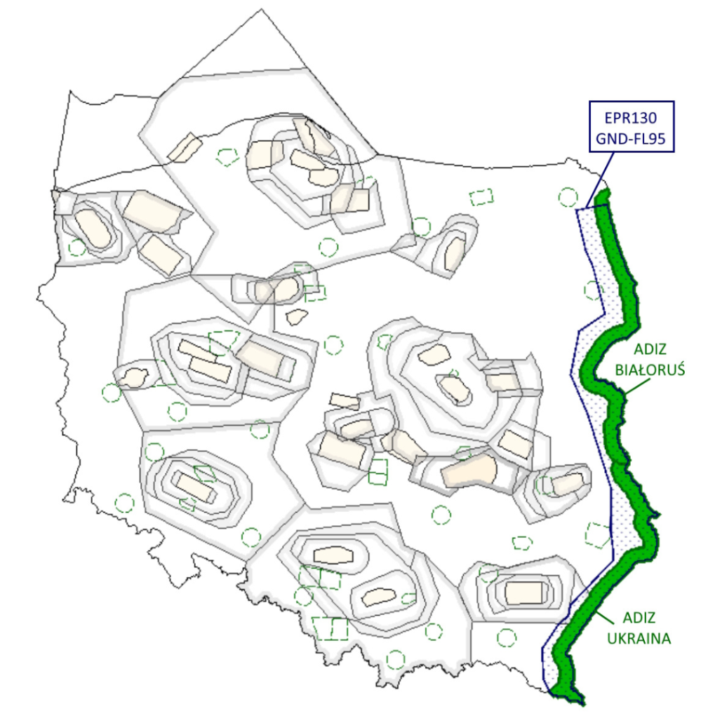 - Cywilnych Bezzałogowych Statków Powietrznych (BSP) bez naruszania stref ADIZ Białoruś i ADIZ Ukraina (strefy identyfikacji obrony powietrznej).