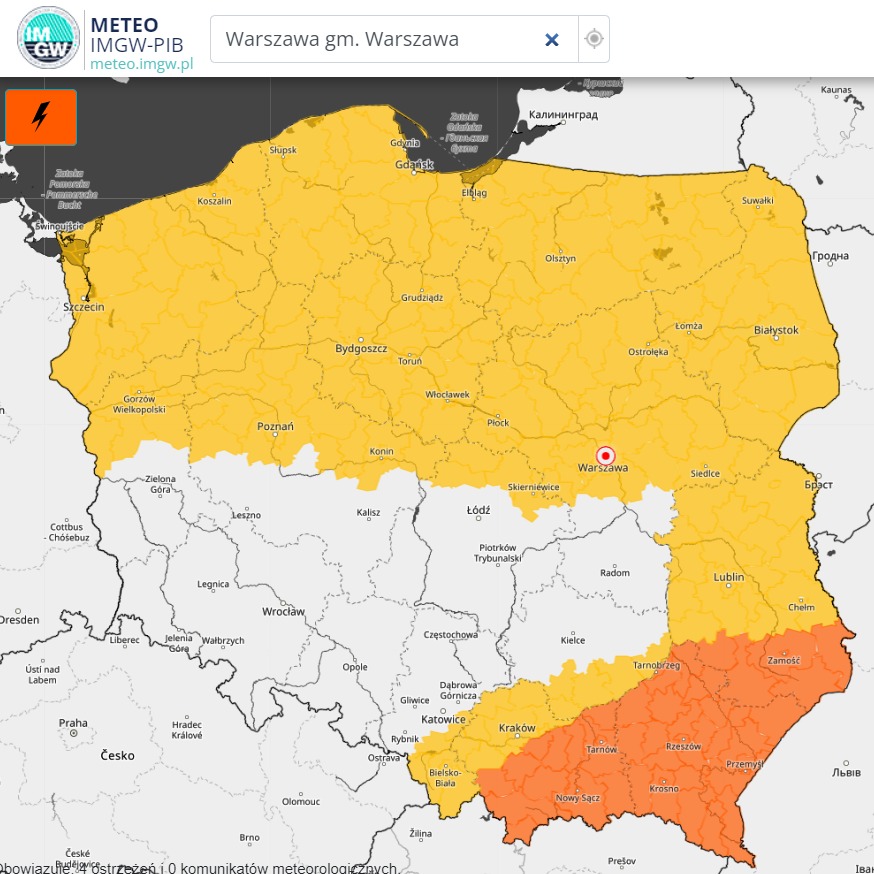 W naszym regionie prognozowane są burze, którym miejscami będą towarzyszyć bardzo silne opady deszczu do 35 mm, lokalnie do 50 mm oraz porywy wiatru do 70 km/h.