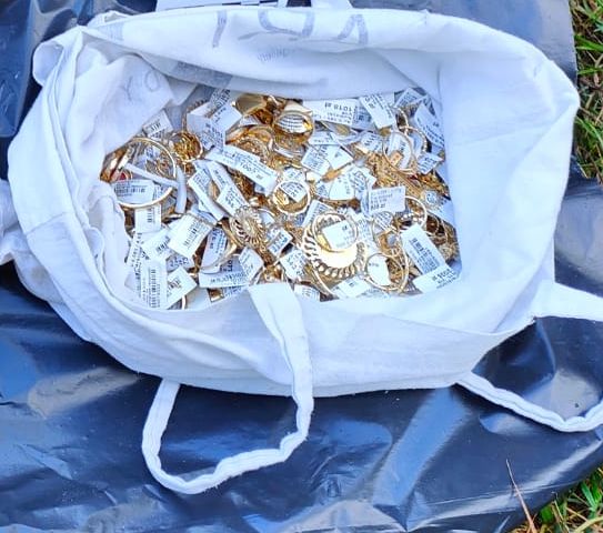 Zapakowane do reklamówek złote łańcuszki, pierścionki i bransoletki policjanci ujawnili w miejscu zamieszkania 39-latka. Część z nich była zakopana w przydomowym ogródku. Inna ukryta była w pomieszczeniu gospodarczym. Ich wartości nie została dokładnie wyceniona, ale pokrzywdzony szacuje, że całość zrabowanego mienia może sięgać nawet miliona złotych.