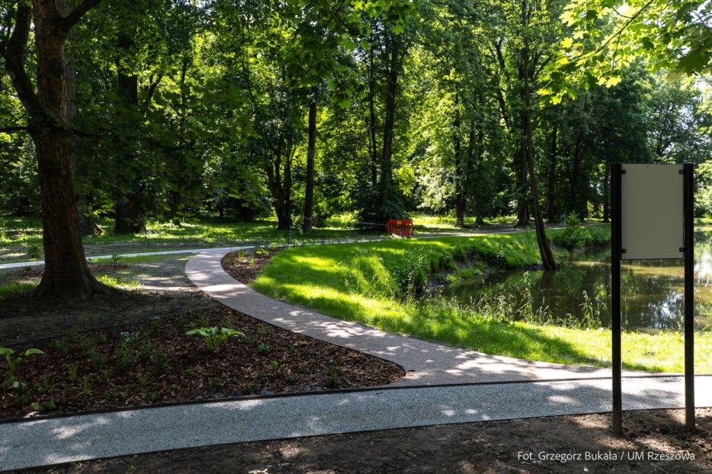 Wybudowane zostały nowe alejki, wyczyszczony został staw, zamontowane zostały tam fontanny, wybudowaliśmy mostki. W parku powstał nowy plac zabaw, zamontowane zostało oświetlenie, pojawiły się oczywiście nowe nasadzenia. To tylko część zadań, które były współfinansowane z funduszy Unii Europejskiej.