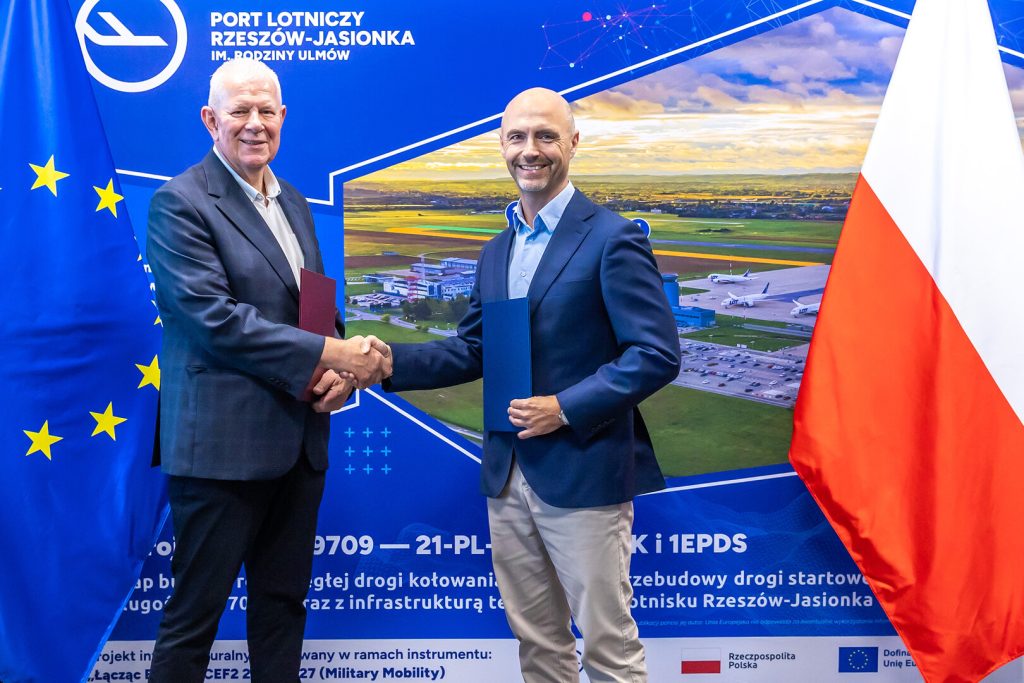 Przedstawiciele firmy Safege S.A.S. Sociate par Actions Simplifiee oraz Portu Lotniczego Rzeszów-Jasionka im. Rodziny Ulmów podpisali umowę na nadzór inwestorski dla inwestycji obejmującej budowę II etapu równoległej drogi kołowania oraz przebudowę I etapu drogi startowej na odcinku o długości 700 m wraz z infrastrukturą techniczną na podrzeszowskim lotnisku. Zadanie jest współfinansowane przez Unię Europejską.