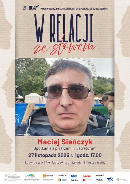Wojewódzka i Miejska Biblioteka Publiczna w Rzeszowie zaprasza na spotkanie z Maciejem Sieńczykiem – pisarzem i ilustratorem, które odbędzie się 27 listopada o godz. 17.00 w budynku WiMBP przy ul. Sokoła 13 w Rzeszowie. Wstęp wolny.