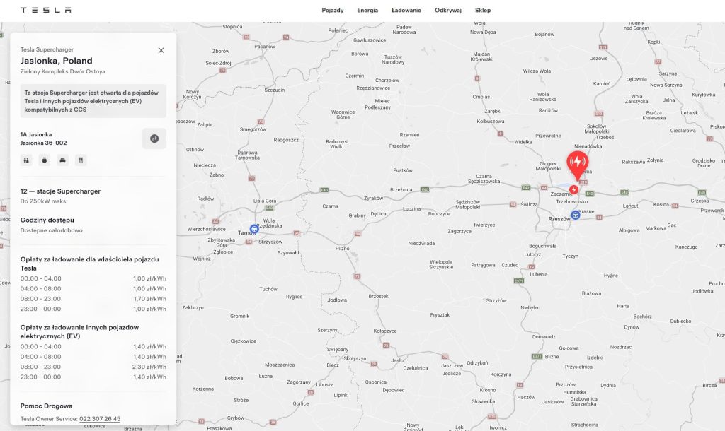 Do dyspozycji kierowców elektryków w ramach Tesla Supercharger mieszczącej się w Jasionce jest 12 punktów ładowania samochodów – do 250 kW każdy. Dużym plusem dla właścicieli innych pojazdów elektrycznych, niż Tesla jest fakt, iż z hubu mogą korzystać także posiadacze innych aut. Wystarczy, że mają złącze ładowania kompatybilne z CCS.