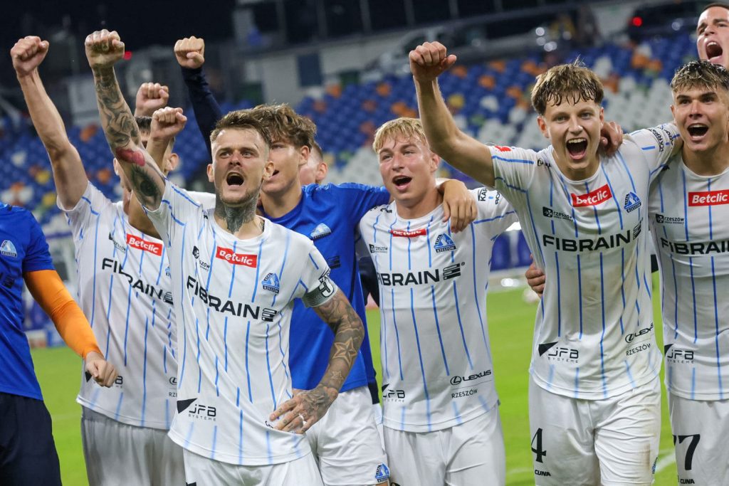 Grając w przewadze, gospodarze szybko to wykorzystali. Po zagraniu ręką w polu karnym Śląska sędzia wskazał na „wapno”, a Jonathan Junior pewnym strzałem zdobył swoją pierwszą bramkę w barwach rzeszowskiego klubu. Chwilę później Śląsk odpowiedział – również z rzutu karnego. Tym razem Kozioł sfaulował Piotra Samca-Talara, a Serafin Szota wyrównał płaskim strzałem z jedenastu metrów.