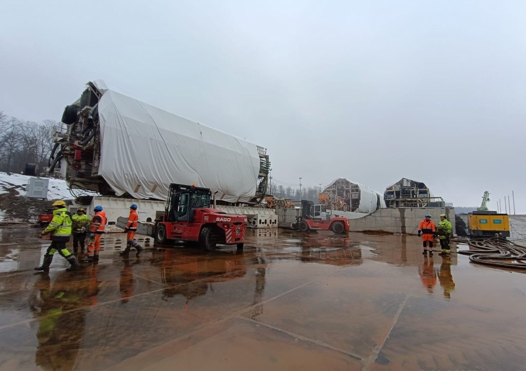 Obrót TBM realizowany był z wykorzystaniem innowacyjnego systemu poduszkowca (Air Mover). To specjalny metalowy stelaż wyposażony w poduszki pneumatyczne, które unoszą maszynę na cienkiej warstwie powietrza, umożliwiając bezpieczne przemieszczanie i obrót elementów o masie liczonej w tysiącach ton. Rozwiązanie to pozwala znacząco ograniczyć konieczność demontażu TBM – maszyna została podzielona jedynie na cztery główne części, co skraca czas operacji i zwiększa jej bezpieczeństwo.