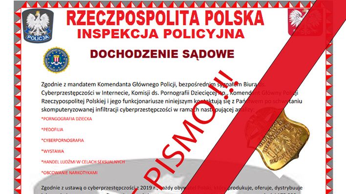 Opisywane maile ZAWIERAJĄ NIEPRAWDZIWE informacje! Polska Policja nie jest ich autorem.