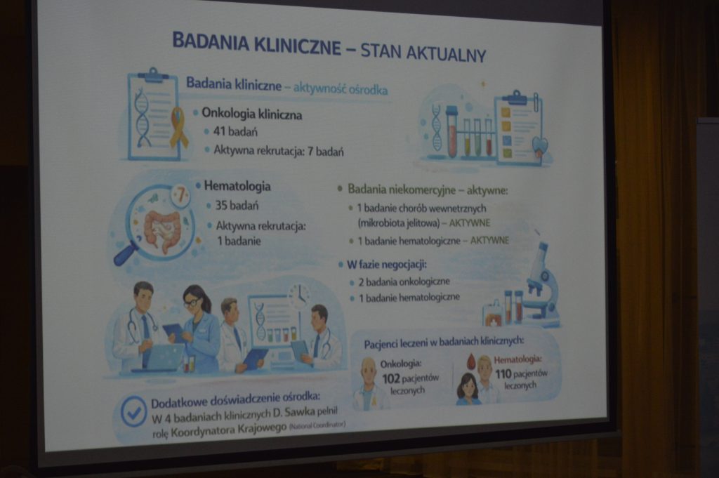 Podczas spotkania zaprezentowano też aktualne projekty badań klinicznych realizowane w województwie podkarpackim. Omówiono także współpracę ośrodków w skutecznym kierowaniu pacjentów do badań klinicznych – od momentu rozpoznania choroby, przez kwalifikację, aż po udział w badaniu.