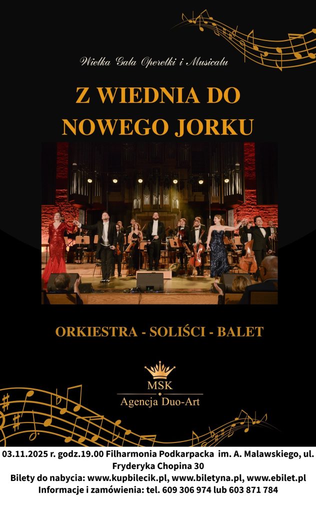 Filharmonia Podkarpacka w Rzeszowie zaprasza 3 listopada o godz. 19 na na kolejną odsłonę Wielkiej Gali Muzycznej, podczas której, tym razem prosto z dystyngowanego, barwnego Wiednia powędrujemy do energetycznego Nowego Jorku!