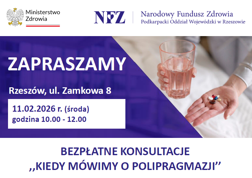 Choroba często oznacza konieczność przyjmowania leków. Nierzadko jest ich kilka, a w przypadku kilku schorzeń nawet kilkanaście. Z okazji Światowego Dnia Chorego Podkarpacki Oddział Wojewódzki NFZ w Rzeszowie zaprasza 11 lutego, w godz. 10-12 na Dzień Otwarty, poświęcony bezpieczeństwu farmakoterapii i problemowi wielolekowości.