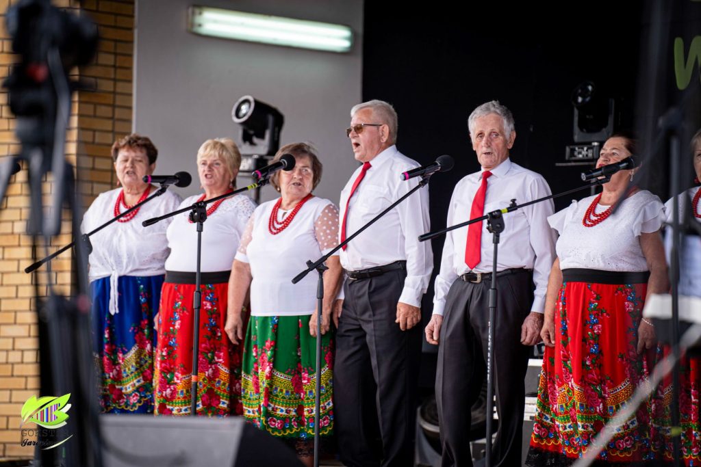Następnym punktem prezentacji scenicznych były występy zespołów wokalnych seniorów. Usłyszeliśmy utwory wykonane przez „Wesołe kumosie”, „Brokaty” i „Jargocian”. Panie i panowie chętnie uczestniczą w cotygodniowych zajęciach, doskonaląc warsztat wokalny.