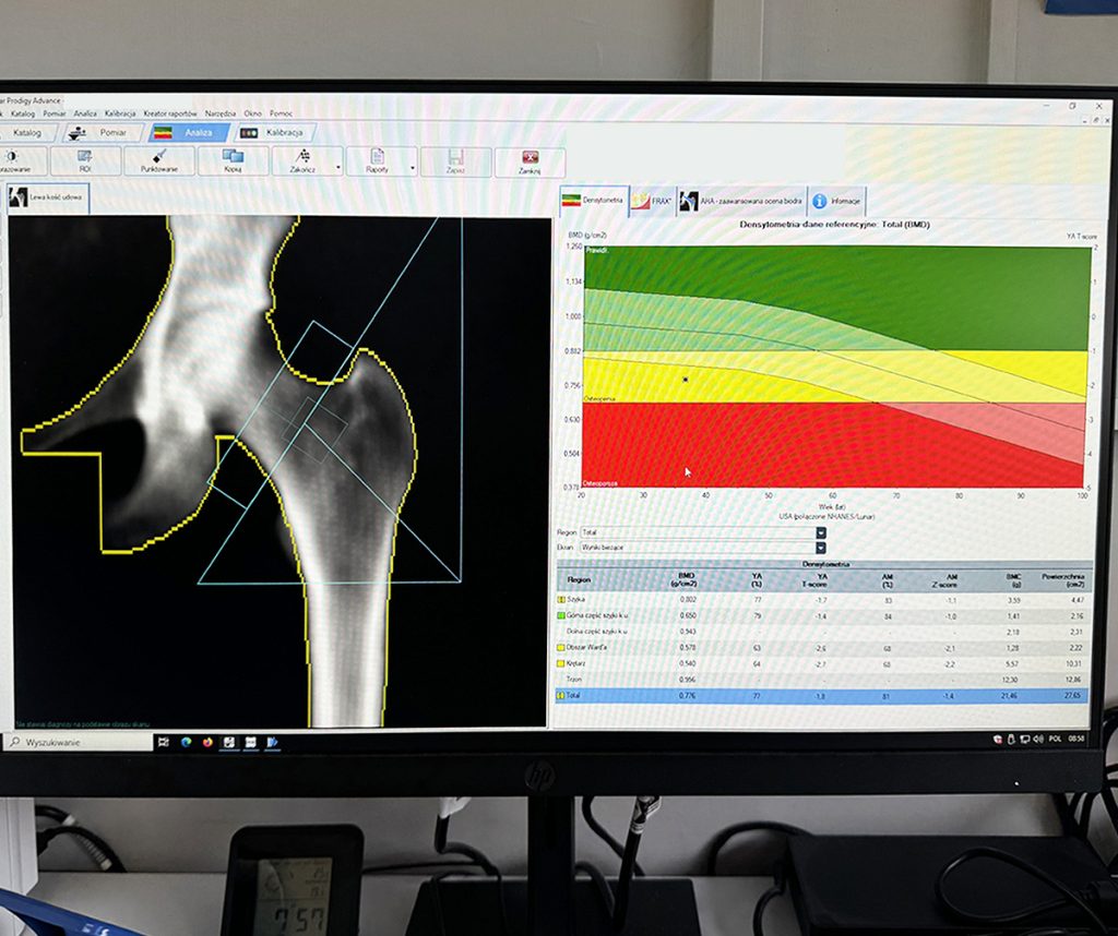 Dlaczego warto wykonać badanie densytometryczne? To jedno z najważniejszych badań w profilaktyce zdrowia kości. Pozwala: wykryć osteoporozę i osteopenię na wczesnym etapie, zanim pojawią się objawy, ocenić ryzyko złamań, szybciej wdrożyć odpowiednią profilaktykę lub leczenie, zadbać o sprawność i komfort życia na dłużej.