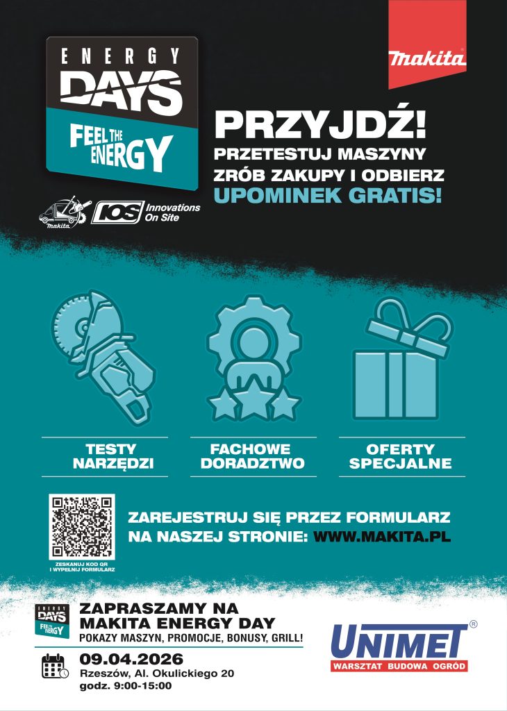 Już 9 kwietnia będzie miało miejsc wyjątkowe wydarzenie, które naładuje Cię pozytywną energią i wiedzą technologiczną. W ten dzień w godz. 9-15 wspólnie z marką Makita organizowany zostanie Energy Day w Unimet Rzeszów! Wydarzenie odbędzie się w Rzeszowie przy ul. Okulickiego 20.