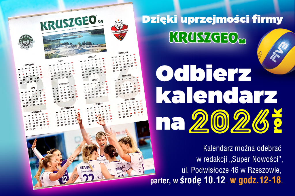 Dzięki uprzejmości firmy KRUSZGEO S.A., jednego ze sponsorów KS DevelopResu Rzeszów mamy dla naszych Czytelników kalendarze z siatkarkami na 2026 rok.