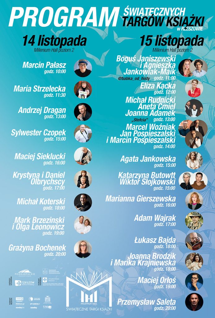 BJ Service, BOSZ, Bratni Zew / Fernando, Dominikańskie Wydawnictwo W Drodze, Dreams Wydawnictwo, Edycja Świętego Pawła – Księgarnia W Rzeszowie, Eduigi, Fundacja Mam Marzenie, IUVI Games / SmartGames, KABAK, Katarzyna Bieńkowska / Nathalie K. Flower, Księga Wiedzy, Księgarnie NOVA, Marginesy / Jaguar / Luna / Kropka / Port, Męskie Wydawnictwo N-Kort / Na Ganku Kasi, Mroczne.pl, Oficyna Wydawnicza Politechniki Rzeszowskiej, PAT & ART, Pointgames, Preston Publishing. Wydawnictwo Językowe, Regionalne Stowarzyszenie Twórców Kultury W Rzeszowie, Sinister Project, Sklep z literaturą biblijną, Społeczny Instytut Wydawniczy Znak, Uniwersum Powiernika, Wielka Litera, Widnokrąg, Wydawnictwo Agora, Wydawnictwo Alegoria / Wydawnictwo IX, Wydawnictwo Amaltea, Wydawnictwo BIS, Wydawnictwo Claroscuro, Wydawnictwo Diamenty / Maja Drozd, Wydawnictwo Harde, Wydawnictwo Hm / Nie powiem, Wydawnictwo Instytutu Pamięci Narodowej, Wydawnictwo Jedność, Wydawnictwo Kameleon, Wydawnictwo Libra PL, Wydawnictwo Literówka, Wydawnictwo Mięta, Wydawnictwo Otwarte, Wydawnictwo RUTHENUS – Krosno, Wydawnictwo Szary Wilk, Wydawnictwo Tatarak, Wydawnictwo Uniwersytetu Rzeszowskiego, Wydawnictwo Vectra, Wydawnictwo Zielona Sowa / Books4YA, Zysk i S-ka Wydawnictwo / Wydawnictwo Literackie / :Dwukropek / Wydawnictwo Nowa Baś.
