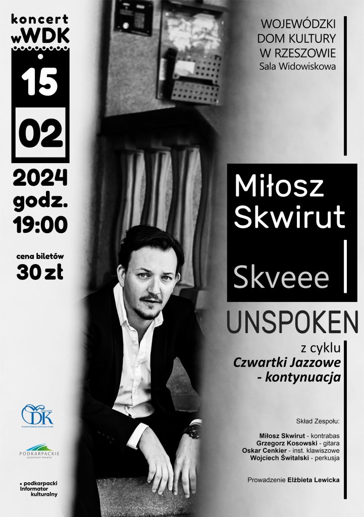 Miłosz Skwirut funkcjonuje na rynku muzycznym już od kilkunastu dobrych lat. Na swoim koncie ma kilka albumów, nagranych z kilkoma zespołami i kilkaset koncertów zagranych na całym świecie, między innymi jako kontrabasista dobrze znanego rzeszowskiej publiczności zespołu Kraków Street Band.