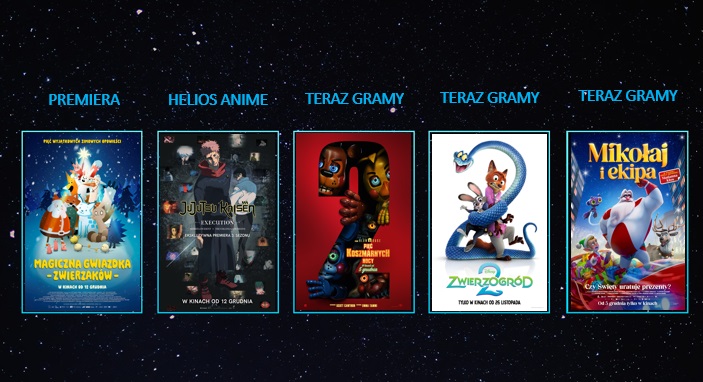 W najbliższym tygodniu Helios zaskoczy kinomanów nie tylko mnogością propozycji filmowych, lecz także projektów specjalnych dla widzów o rozmaitych zainteresowaniach. W repertuarze znajdzie się najnowsza animacja „Magiczna gwiazdka zwierzaków”, japoński hit „Jujutsu Kaisen: Execution” oraz projekcje muzyczne i tematyczne cykle.