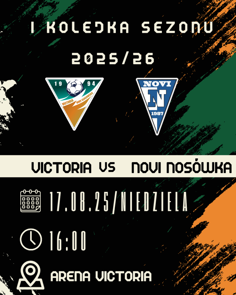 W niedzielę, 17 sierpnia, o godzinie 16 drużyna Victorii Budy Głogowskie rozpocznie sezon 2025/26 meczem z zespołem Novi Nosówka. Spotkanie odbędzie się na boisku Arena Victoria, a emocji z pewnością nie zabraknie. Wszyscy kibice są zaproszeni do gorącego dopingu.