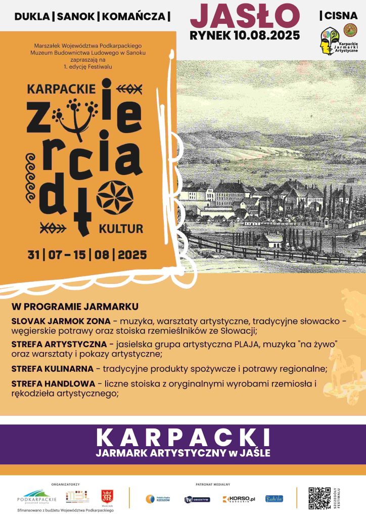 W programie pierwszej edycji festiwalu „Karpackie Zwierciadło Kultur” , który zagości w Jaśle i okolicach znalazło się mnóstwo atrakcji. Do Jasła zawita Slovak Jarmok Zona. Nasi południowi sąsiedzi zaproponują uczestnikom wydarzenia m.in. udział w warsztatach artystycznych oraz zaprezentują tradycyjne wyroby rzemieślnicze. Będzie też można skosztować tradycyjnych słowacko – węgierskich potraw.