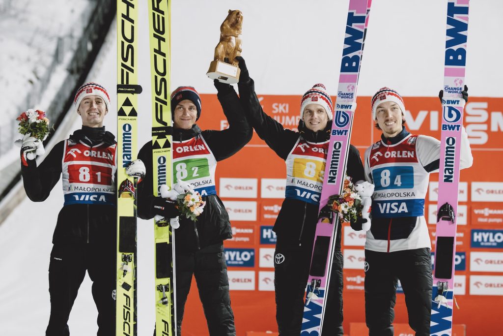 – Dzisiejszy dzień podsumowałbym troszkę słodko-gorzko – powiedział Dawid Kubacki po sobotnich zmaganiach na Wielkiej Krokwi, gdzie Polacy zajęli 5. miejsce. Rozgrywany po raz 13. w historii, drużynowy konkurs Pucharu Świata w Zakopanem padł łupem Austriaków, którzy wyprzedzili Słoweńców aż o 40,8 punktu. Na najniższym stopniu podium stanęli zawodnicy z Norwegii.
