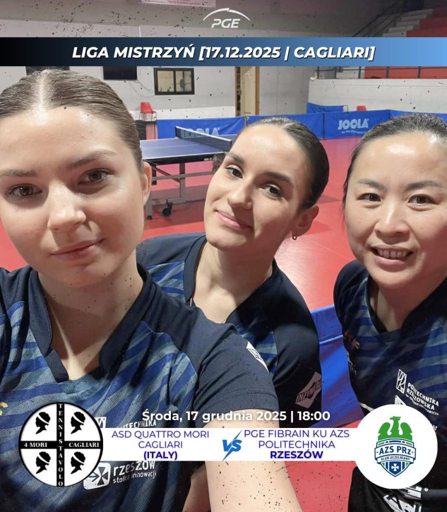 Tenisistki stołowe PGE Fibrain AZS Politechniki Rzeszów przegrały 1:3 na Sardynii z ASD Quattro Mori Cagliari w meczu grupy B Ligi Mistrzyń. To druga porażka mistrzyń Polski.