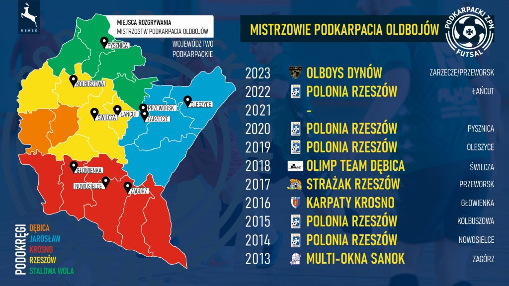 Rozlosowano grupy 11. Mistrzostw Podkarpacia w futsalu, które rozegrane zostan air jordan 4 military blue 2024ą 21 stycznia w Krośnie. Tytułu mistrzowskiego bronić będzie zespół Oldboys Dynów.