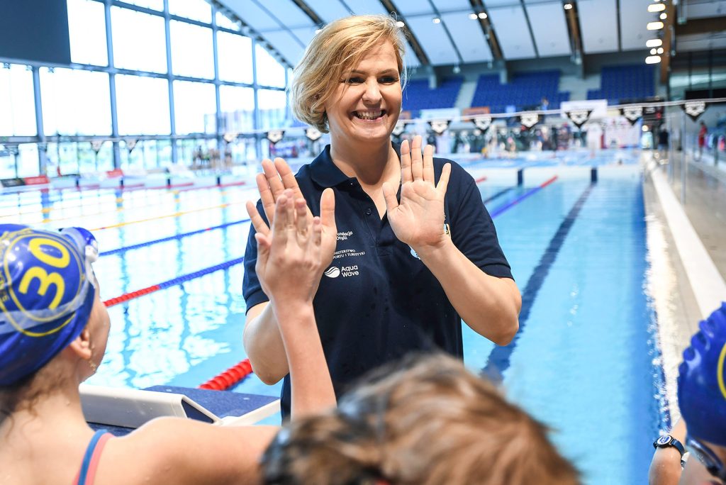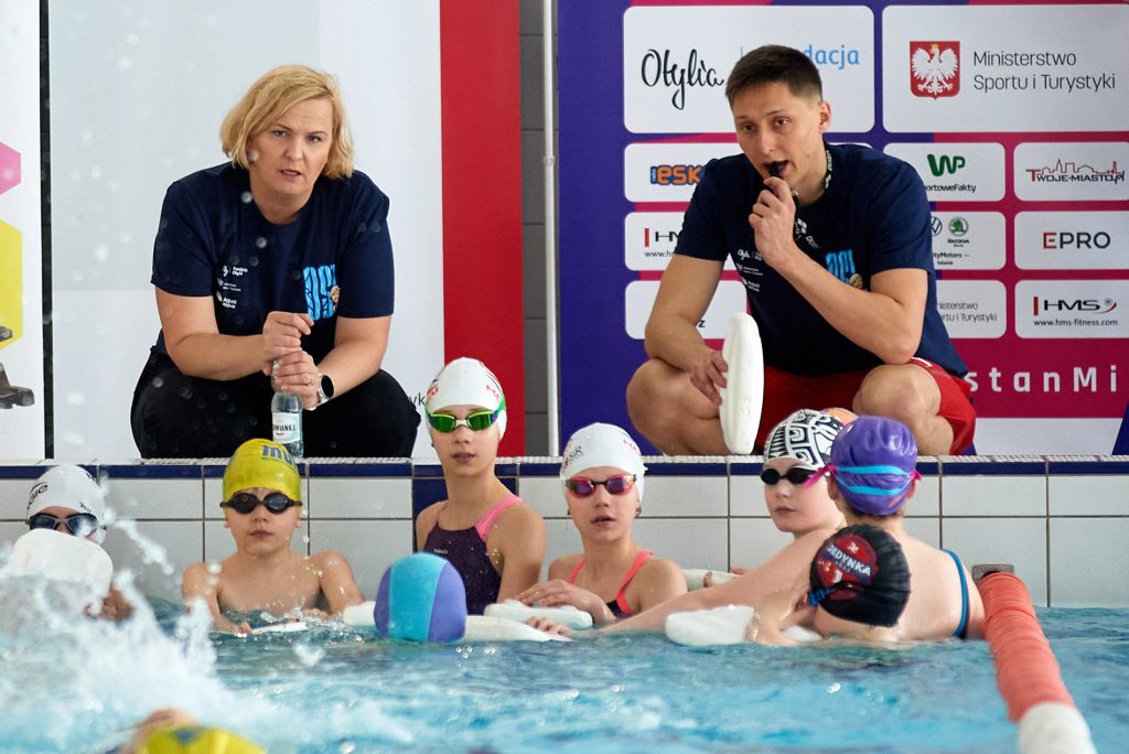 – Zarówno ja, jak i nasi trenerzy, mamy nadzieję, że jeśli dziecko zapamięta choć jedno ćwiczenie od każdego z trenerów, to będzie to dobry wynik. Czasami trafiamy do tych samych miejsc, spotykamy dzieci, które już kiedyś były na naszych zajęciach i widzimy, że one pamiętają i wykorzystują ćwiczenia, które u nas zobaczyły – mówi najlepsza zawodniczka w historii polskiego pływania.