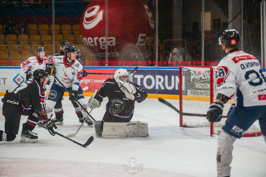 Hokeiści z Podkarpacia jedynie w pierwszej tercji toczyli w miarę wyrównaną walkę z rywalami. Później przewaga torunian była już przygniatająca o czym może świadczyć liczba strzałów 45-18.