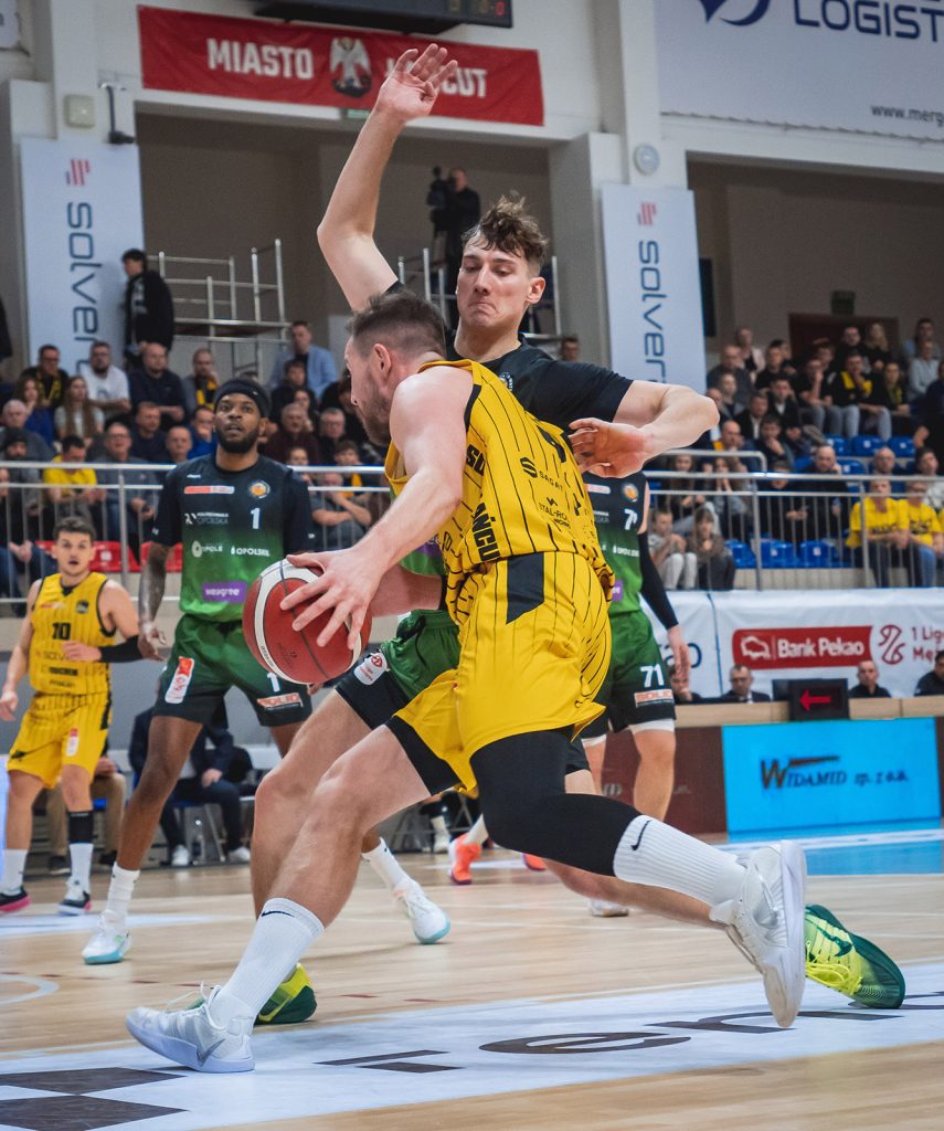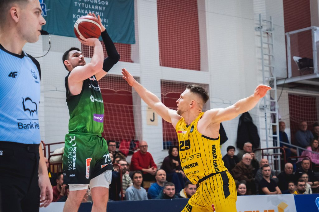 – Niestety to nie wystarczyło, żeby odnieść zwycięstwo. Bardzo źle weszliśmy w mecz, bardzo leniwie i pasywnie. Sokół bardzo łatwo zdobywał punkty w początkowych fragmentach, szczególnie na pick and rollu. Byliśmy pasywni. Nadmiar złego w szóstej minucie meczu Kuba Kobel, nasz rozgrywający, mózg zespołu, złapał kontuzję, co jest wielką stratą dla nas. Graliśmy bez rozgrywających, bo Michał Szarbatke jest kontuzjowany i został w Opolu. Nie ma Borysa Barna, więc nasza rotacja na obwodzie jest bardzo mała, a po kontuzji Kuby to już można powiedzieć, że w ogóle jej nie ma. Łukasz Kupczyński i Dominik Rutkowski próbowali łatać te dziury, natomiast było widać problemy w organizacji gry. Mimo tego wszystkiego i tak byliśmy w grze. Był moment, w którym nie trafiliśmy dwóch prostych lay-upów. Mieliśmy 2-3 otwarte rzuty w takim bardzo ważnym momencie, gdzie była szansa na przełamanie. Brakuje mi już słów bo mamy dwunastą kolejkę, a tylko dwa razy zagraliśmy w pełnym składzie. Znów wypada nam ktoś z kluczowych osób, ale takie jest życie – mówił trener.