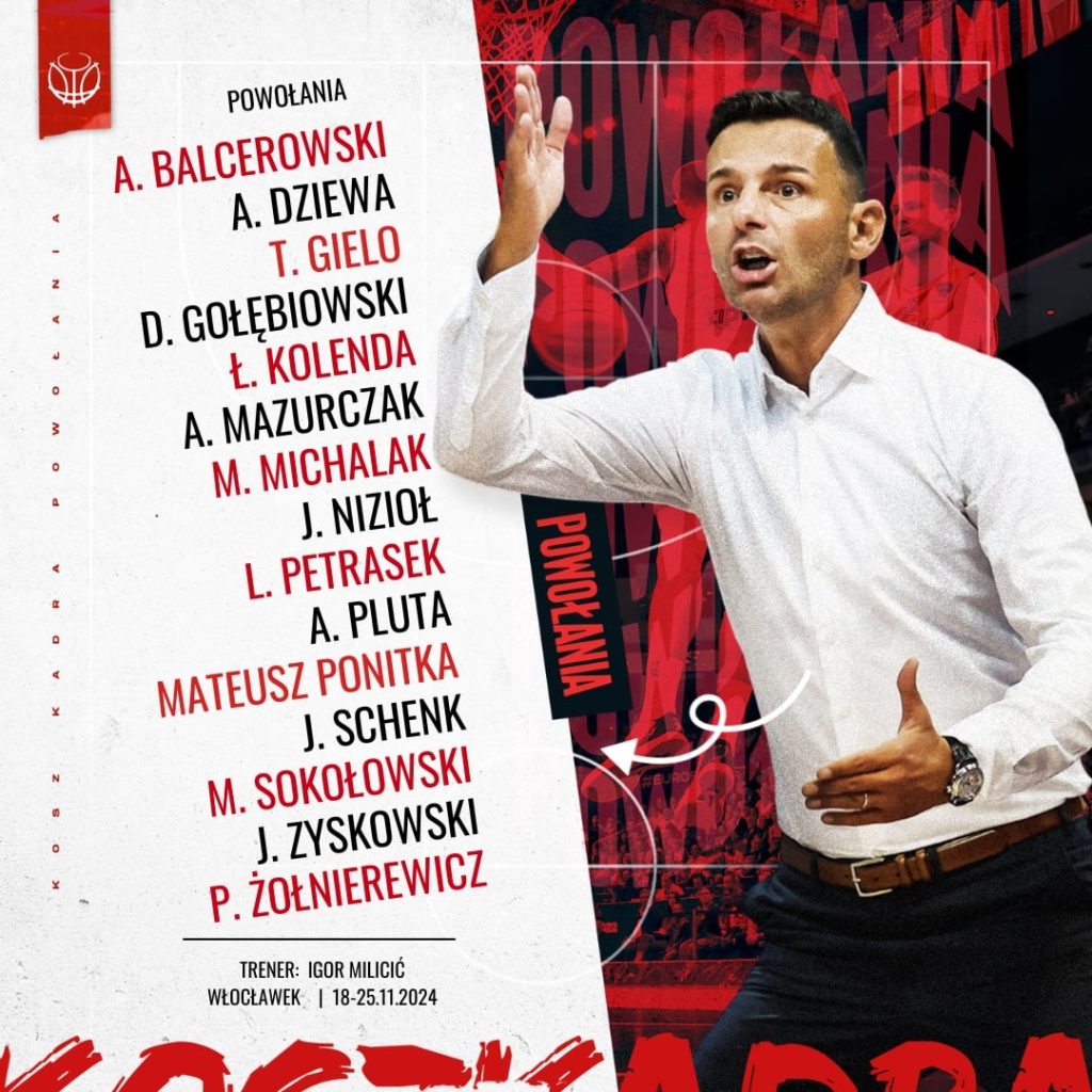 Trener reprezentacji Polski koszykarzy Igor Milicic powołał 15-osobową kadrę na zbliżające się mecze z Estonią w eliminacjach mistrzostw Europy 2025. Biało-czerwoni zmierzą się z tym rywalem 21 listopada we Włocławku, a trzy później w Tallinie.
