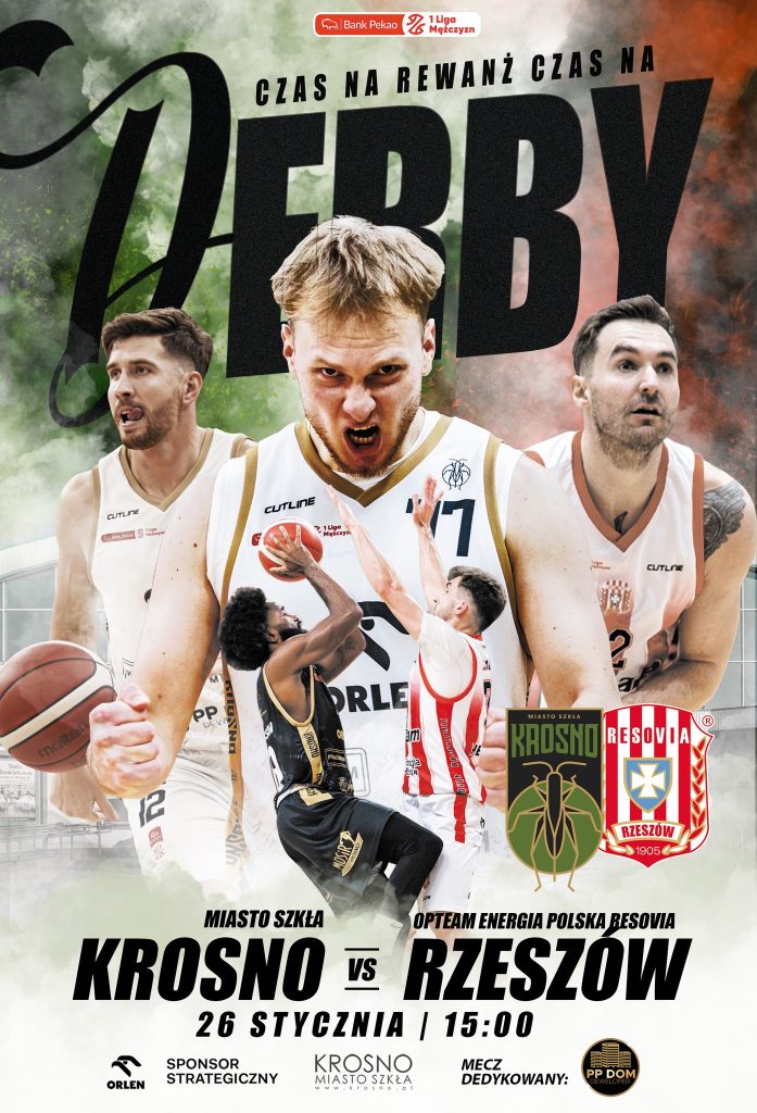 W niedzielę (godz. 15) w hali MOSiR w Krośnie rozegrane zostaną koszykarskie derby Podkarpacia. Mające za sobą serię dwunastu z rzędu zwycięstw Miasto Szkła zmierzy się z OPTeam Energia Polska Resovia. W I rundzie resoviacy wygrali po dogrywce 96:92.